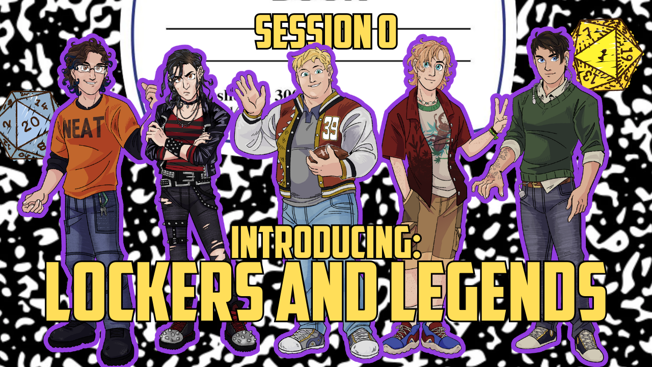 Get to know the characters from our new campaign, Lockers and Legends, as we get ready to go back to high school. We have the nerd, the goth, the jock, the other nerd, and the emo kid to round out this detention session.